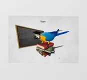 Illustrazione comica di un commento socio-politico sul modo in cui l'istruzione è diventata un meccanismo piuttosto che un sistema per sviluppare le menti. Tutto è copia, ripeti, copia, ripeti, a pappagallo.