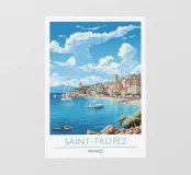 Immergetevi nell'atmosfera glamour della Costa Azzurra con questo vivace poster digitale di Saint-Tropez. L'opera d'arte presenta una vista pittoresca del villaggio, con le sue case dai tetti in terracotta raggruppate lungo la costa. Le barche a vela punteggiano l'acqua blu intenso della baia sotto un cielo drammatico pieno di nuvole bianche stilizzate. Questo pezzo cattura perfettamente l'essenza chic e solare del Mediterraneo. Fornito come file digitale di alta qualità (7000x5000 pixel, 300 dpi), garantisce dettagli spettacolari e ricchezza di colori per qualsiasi dimensione di stampa.