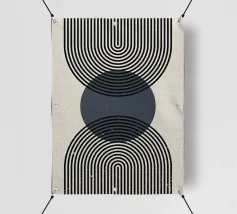 Questo design moderno e retrò combina linee nere pulite con una forte tonalità di blu e crea un mix armonioso di geometria, minimalismo e fascino di metà secolo. Gli archi semicircolari creano un effetto strutturato ma artistico, ideale per soggiorni, uffici o studi creativi. Un motivo senza tempo per chi apprezza le forme moderne e l'estetica calma ed elegante. poster geometrico, design retrò, arte murale moderna, stampa d'arte astratta, design minimalista, arte murale blu, poster line art, metà secolo moderno, forme geometriche, geometria astratta, decorazione murale per interni.
