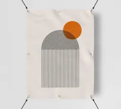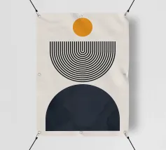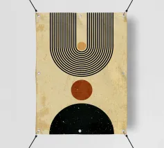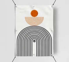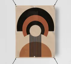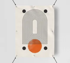 Questo design moderno combina forme geometriche minimaliste con un arancione deciso e linee delicate in nero. La struttura chiara e l'accattivante gioco di colori creano un equilibrio perfetto tra le vibrazioni retrò e l'estetica contemporanea. Ideale per murales, cuscini, tazze o cover per telefoni cellulari, questo motivo si impone con stile in soggiorni, uffici o come regalo creativo. Un must per gli amanti dell'arte minimalista e geometrica.