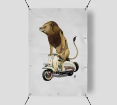 Un'illustrazione comica della forza impegnata che la guida di una Vespa classica può fornire, indipendentemente dalla potenza della voce del pilota.