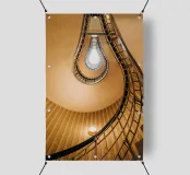 Questa bella scala a chiocciola di Praga sembra salire a spirale verso il cielo. La scala ha un look retrò chic che funziona bene come poster o su altri materiali stampati, come la tazza del caffè o il taccuino.