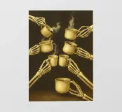 Scheletro con caffè in mano