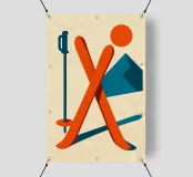 Due sci incrociati, una silhouette geometrica, un sole senza peso. L'inverno diventa pop, elegante e raffinato. Un poster che reinventa lo sci in uno stile di design moderno.