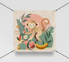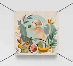 "La scimmia e l'uva" è un adattamento illustrato del racconto classico con un tocco artistico moderno.