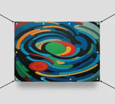 Un audace motivo astratto con un tocco di energia dinamica che simboleggia il movimento e la fluidità. Colori vivaci che evocano temi come l'acqua, la vita e il movimento. Una fusione innovativa di tradizione e modernità per interni contemporanei e minimalisti. Un linguaggio visivo unico che supera i confini culturali.