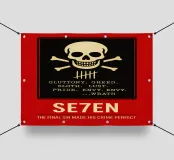 Stampa Seven, Poster cinematografico alternativo, Arte murale minimale, Bianco e nero, Teschio, Sette peccati capitali, Segni del conteggio, Segni di hashish, Regalo per i fan del cinema