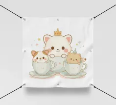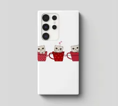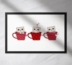 Simpatici gattini con tazze di caffè. Design di Buon Natale