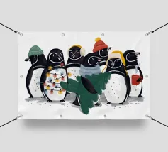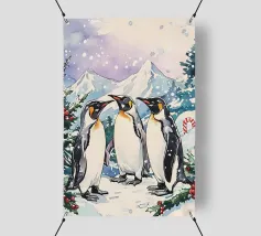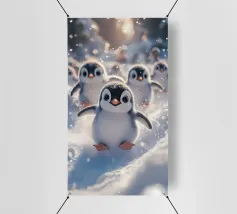 Un disegno invernale pieno di tenerezza, con allegri pinguini che passeggiano tra fiocchi di neve colorati su uno sfondo di neve e ghiaccio. Perfetta per creare un'atmosfera polare morbida e festosa, questa immagine farà la gioia degli amanti dei pinguini e dei simpatici pinguini, dell'inverno e della magia della neve. Ideale per decorazioni stagionali, camerette dei bambini o qualsiasi spazio che richieda freschezza, gioia e gelida meraviglia.