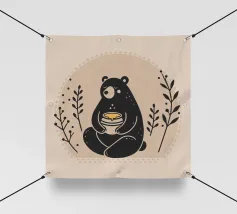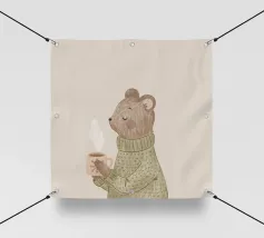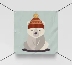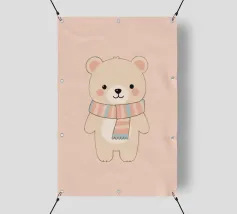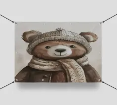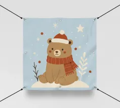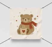 Simpatico orso in inverno con sciarpa e tazza calda - perfetto per un look accogliente, per l'inverno, per il Natale e per tutti coloro che amano i simpatici motivi animali.