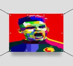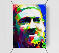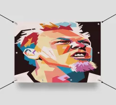 WPAP (Wedha's Pop Art Portrait) è uno stile artistico geometrico, vibrante e colorato che enfatizza gli angoli acuti e i contrasti di colore. Un ritratto di Sinéad O'Connor in stile WPAP presenterebbe la sua sorprendente struttura facciale con forme spigolose e taglienti in colori vivaci e contrastanti. La sua caratteristica testa rasata e il suo sguardo intenso sarebbero accentuati da audaci motivi geometrici. L'opera d'arte catturerebbe la sua profondità emotiva e il suo spirito ribelle, riflettendo la sua eredità di musicista e attivista senza paura.