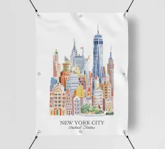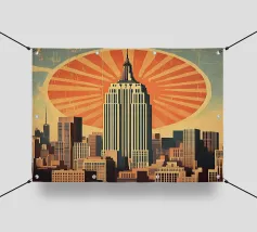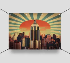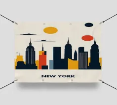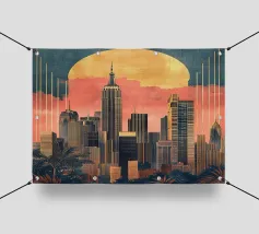 Grattacieli stilizzati dai colori intensi per un'immersione grafica nello skyline moderno. Questo poster rende omaggio all'architettura verticale e al ritmo delle grandi città, con la sua combinazione di potenza architettonica ed eleganza minimalista.