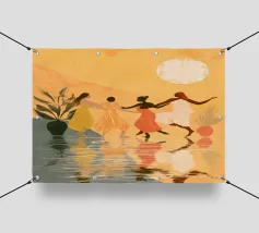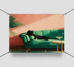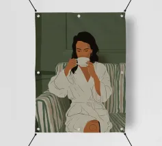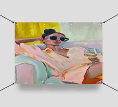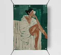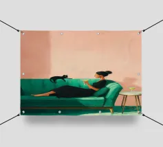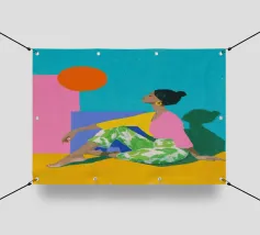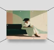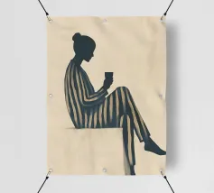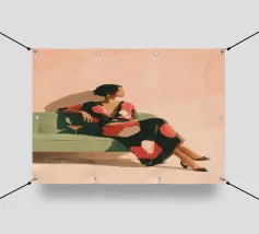 Mescolando toni di metà secolo e grazia moderna, questo pezzo esplora l'intersezione tra forma e solitudine. La palette di colori tenui e la geometria audace riecheggiano la presenza tranquilla della donna, creando una composizione che sembra un jazz visivo, sofisticato e senza sforzo.
