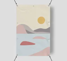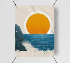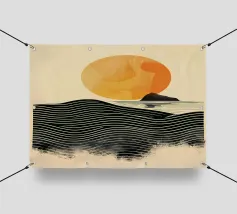 Abbracciate la profonda bellezza della serena solitudine. Questo paesaggio minimalista cattura il momento di quiete in cui il sole bacia l'orizzonte, proiettando una calda luce su un mare tranquillo. Utilizzando forme semplici e una tavolozza di terracotta e blu tenui, questo pezzo è un invito aperto a fermarsi, respirare e trovare un momento di tranquillità in un mondo affollato. È l'opera d'arte perfetta per creare un punto focale calmo e meditativo in salotto, in camera da letto o in qualsiasi altro spazio in cui si cerchi pace e una dolce evasione.
