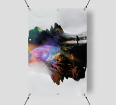 In questa illustrazione digitale, una ragazza e un ragazzo si trovano davanti a montagne misteriose, avvolte da nuvole vorticose. Cercano chiarezza in un paesaggio vasto e isolato, le loro figure sono perse in un momento di incertezza. Le imponenti montagne e il cielo nebbioso rispecchiano la loro lotta interiore per la visione, creando un potente senso di isolamento e di tranquilla introspezione.