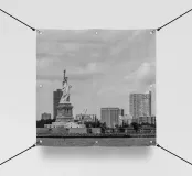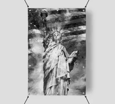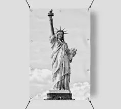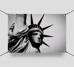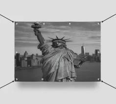 Questa affascinante fotografia in bianco e nero mostra l'iconica Statua della Libertà contro l'imponente skyline di Manhattan, simbolo di libertà e democrazia. Con un design elegante, l'opera d'arte combina l'estetica moderna con la bellezza senza tempo di questo famoso simbolo e aggiunge un tocco di raffinatezza a qualsiasi ambiente.