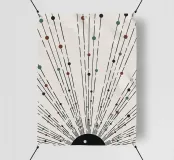 Questo straordinario disegno mostra un sole stilizzato con raggi dinamici dalle linee sottili, completato da punti colorati in verde, marrone e nero. L'estetica minimalista e la palette di colori tenui rendono questo motivo ideale per murales, cuscini, tazze e altri accessori per la casa. Conferisce un'atmosfera moderna e rilassante a qualsiasi ambiente ed è perfetto per gli amanti dello stile boho e scandinavo e per chiunque apprezzi l'arte e il design.