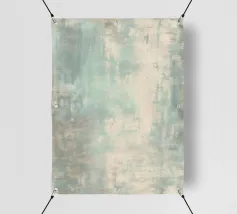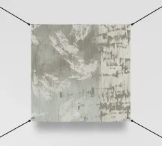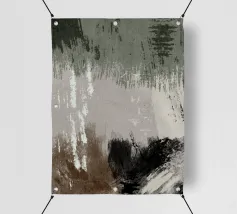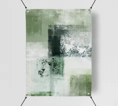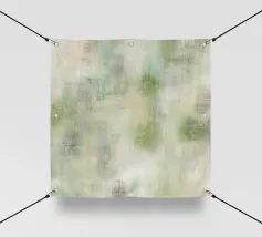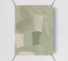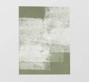 Pittura acrilica con pennellate di colore bianco su sfondo verde salvia e verde oliva.