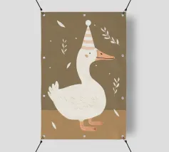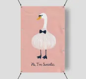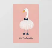Ecco Swarlic, un cigno con il fiocco vestito con un abito ispirato all'aglio. Questo personaggio minimalista, che unisce l'umorismo degli animali a quello dei buongustai, aggiunge un tocco di allegria e un sorriso a qualsiasi ambiente.