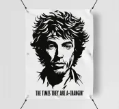 Iconico ritratto in bianco e nero di Bob Dylan dall'anima ribelle: questa potente estetica dello stencil combina la street art di Banksy con la ritrattistica classica. I contorni ridotti e le ombre drammatiche creano un'icona senza tempo del cambiamento culturale. Il contrasto minimalista tra bianco e nero esalta l'intensità poetica, mentre la texture dei capelli ricci appare quasi scultorea. Un poster per gli amanti della musica e per chiunque celebri il cambiamento sociale: pura filosofia rock'n'roll da appendere al muro.