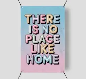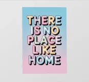 Le scritte colorate e audaci "The Front" e "There Is No Place Like Home" in una tipografia retrò e vintage. Le lettere colorate e vivaci su uno sfondo semplice creano un disegno vettoriale giocoso, pulito ed elegante.