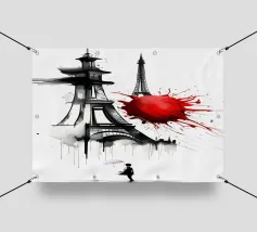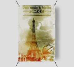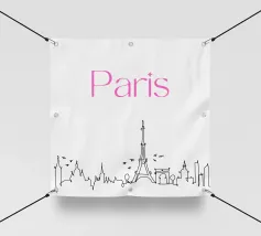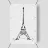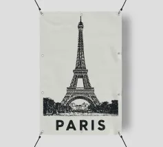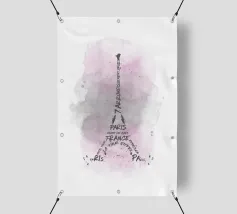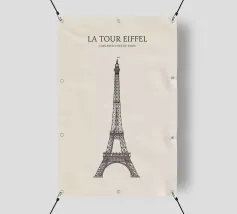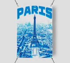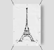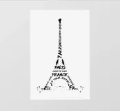 Il famoso simbolo di Parigi, la Torre Eiffel, in un design molto moderno. Lavoro artistico con elementi tipografici.