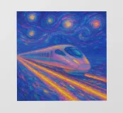 Portate movimento, energia e colore nel vostro spazio con questa suggestiva opera d'arte che raffigura un treno proiettile futuristico che sfreccia in un vorticoso cielo notturno stellato. Dipinta in vibranti tonalità neon di blu, rosa, giallo e arancione, la scena fonde la tecnologia moderna con un'arte cosmica e sognante. Le scie luminose e le pennellate strutturate creano un senso di velocità e meraviglia, rendendolo perfetto per gli appassionati di temi fantascientifici, arte di viaggio e arredamento contemporaneo audace. Un centrotavola dinamico che aggiunge emozione e immaginazione a qualsiasi ambiente.