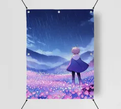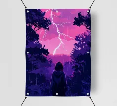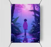 Una ragazza in piedi in una giungla in una notte di pioggia Lofi Art