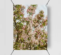 Entrate in un mondo di tranquillità sotto un albero in piena fioritura, dove le delicate fioriture creano una scena pittoresca e sognante: Chioma floreale - I morbidi petali formano un vibrante tetto di colori, dal rosa tenue al bianco candido. Luce filtrata - La luce del sole danza attraverso i fiori, proiettando un bagliore caldo e magico. Profumo di natura - L'aria si riempie della sottile fragranza dei fiori freschi. Rifugio tranquillo - Un luogo sereno per riflettere, rilassarsi e ammirare la bellezza della primavera.