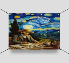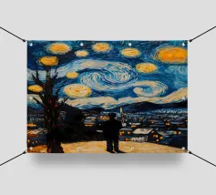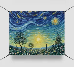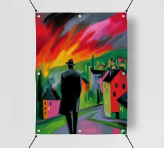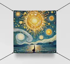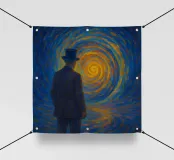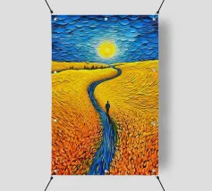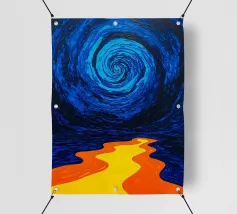 Questa accattivante opera d'arte ritrae una figura solitaria in piedi davanti a un vortice radioso, che mescola blu profondi con una vibrante luce dorata. I tratti pittorici creano un senso ipnotico di movimento e mistero, invitando lo spettatore a un viaggio onirico. Con il suo bagliore atmosferico e l'atmosfera contemplativa, questo disegno si rivolge agli appassionati di paesaggi surreali, arte simbolica e narrazione emotiva. Un pezzo di grande effetto che aggiunge profondità, intrigo e colore agli interni moderni, agli studi creativi o agli spazi di meditazione. Lasciate che la vostra parete racconti una storia di meraviglia.