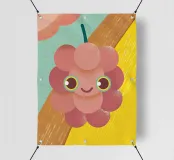 Allegra illustrazione che raffigura un acino d'uva con una faccia simpatica, che irradia uno spirito di squisitezza e allegria.