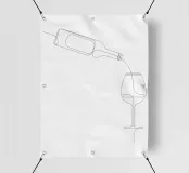 Disegno a linee continue di vino che si versa dalla bottiglia al bicchiere
