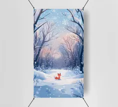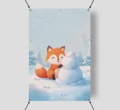 Con un sorriso giocoso, Voxy modella una piccola scultura di neve in una foresta innevata. Il blu tenue, la delicata nevicata e la simpatica energia invernale ne fanno un'illustrazione perfetta per i bambini e gli amanti delle vacanze.