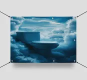 Un luogo tranquillo di relax galleggia sopra le nuvole: questa opera d'arte surreale mostra una moderna toilette circondata da un maestoso paesaggio nuvoloso. La scena ha un effetto quasi meditativo e simboleggia un ritiro dalla vita quotidiana che avviene in un luogo del tutto inaspettato. I toni tenui del blu, insieme all'atmosfera estasiata, conferiscono all'immagine una calma quasi divina. Quest'opera combina in modo insolito umorismo, simbolismo e mondo dei sogni.
