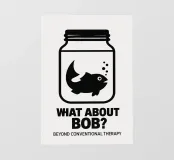 Stampa What About Bob, Poster cinematografico alternativo, Pesce di città, Stampe di qualità, Bianco e nero, Terapia, Psichiatra, Pesce d'oro, Cinema, Regalo