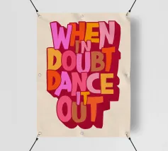 Una stampa tipografica audace ed edificante con la divertente ed energica frase "When in Doubt, Dance It Out". Con un design giocoso di ispirazione retrò e colori vivaci, questa opera d'arte è perfetta per gli amanti della danza, gli appassionati di musica e chiunque creda nel potere del movimento. Un'opera gioiosa per l'arredamento della casa, per gli spazi creativi o come regalo per chi ama ballare. Creato da showmemars