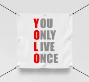Questo potente lavoro tipografico incarna l'attivismo del design minimalista. L'intelligente acronimo Y-O-L-O viene trasformato in un messaggio visivo attraverso una precisa colorazione in rosso e grigio. Il carattere sans serif ricorda le tradizioni del Bauhaus e i manifesti di protesta contemporanei. Lo stile ridotto cita la tipografia politica di Barbara Kruger e la word art di Ed Ruscha. Un pezzo provocatorio che unisce gioia di vivere ed eleganza grafica, perfetto per ambienti moderni e luminosi.