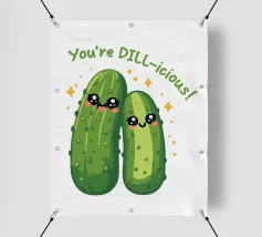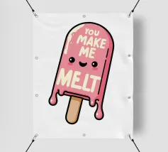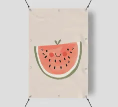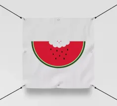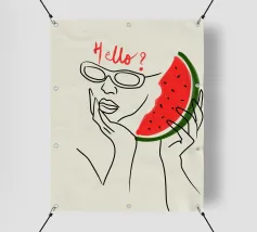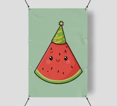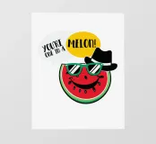 Il personaggio di un'anguria fresca indossa occhiali da sole e un cappello mentre pronuncia un gioco di parole con il testo "Sei un melone!" in bolle vocali.