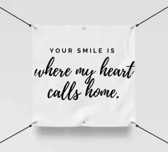 Il tuo sorriso è la mia calma. Espressione d'amore e di San Valentino. Tipografia in nero e bianco (trasparente). È possibile cambiare il colore dello sfondo. Poster tipografico minimalista.