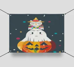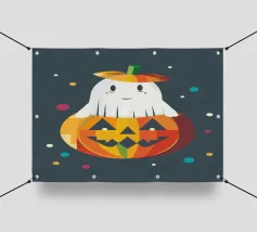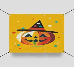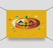 Un'allegra zucca di Halloween dai colori vivaci e dalle forme geometriche: moderna, giocosa e ideale per i temi autunnali di Halloween. Zucca di Halloween colorata con volto Linee pulite e design geometrico Colori vivaci per un look moderno Illustrazione giocosa di Halloween