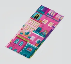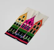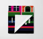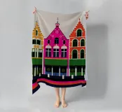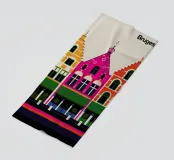 Questa immagine cattura l'architettura di Bruges con colori vivaci e precisione geometrica. Un'aggiunta perfetta a qualsiasi collezione di arte moderna. Ideale per gli amanti dei viaggi, dell'architettura e del design colorato.