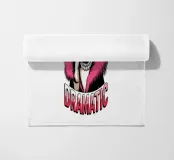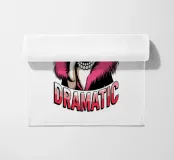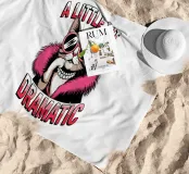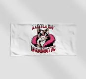 Un gatto vestito in modo glamour, con occhiali da sole oversize, una pelliccia rosa e una collana di perle, emana sicurezza. La frase "A Little Bit Dramatic" è ben visibile sul gatto.