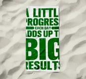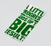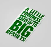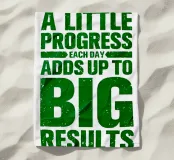 "Arte tipografica d'ispirazione con la frase 'A LITTLE PROGRESS EACH DAY ADDS UP TO BIG RESULTS' (Un piccolo progresso ogni giorno porta a grandi risultati) in grassetto verde, con caratteri rovinati su uno sfondo bianco pulito, che trasmette un messaggio di perseveranza e realizzazione!",