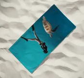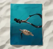 Immergetevi nella serena bellezza del mondo sottomarino con questa opera d'arte digitale che ritrae un apneista che nuota con grazia accanto a una tartaruga marina. Questo lavoro, che cattura la pacifica coesistenza tra l'uomo e la vita marina, è caratterizzato da un vibrante blu dell'oceano, da un movimento fluido e da un senso di calma esplorazione. Perfetto per gli amanti dell'arte oceanica, delle immersioni subacquee, degli animali marini e delle scene acquatiche minimaliste. Ideale per l'arredamento costiero, per gli interni ispirati alla natura e per gli appassionati di conservazione degli oceani.
