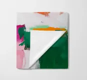 Un vivace dipinto astratto con pennellate decise e una miscela di colori vivaci tra cui rosa, verde, giallo, rosso, arancione, bianco, magenta e viola. Lo sfondo è bianco e crea un contrasto tra i bordi morbidi e le linee nette delle pennellate. In alcune aree, dove spessi strati di colore creano una sensazione tattile, l'accento è posto sulla consistenza dell'opera. Quest'opera contiene elementi che ricordano forme naturali, aggiungendo profondità e movimento alla composizione.