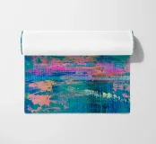 Le vibranti tonalità di rosa, blu e turchese si fondono in un vivace disegno astratto, creando un senso di movimento ed energia. I tratti audaci e i colori stratificati evocano un'atmosfera dinamica ed espressiva.