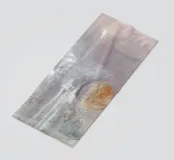 Quadro astratto dai toni morbidi e sfumati. Il colore dominante è un rosa polveroso che si fonde con grigi chiari e tocchi di bianco. Alcune pennellate di arancione caldo emergono sulla destra, creando un punto focale di luce e calore. Le striature di bianco e le texture velate suggeriscono movimento e leggerezza, come se il vapore o la nebbia si dissolvessero nell'aria. Una composizione che trasmette una sensazione eterea e contemplativa, in equilibrio tra calma e dinamismo.