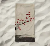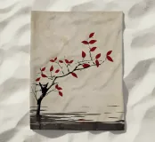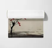 Trovate la serenità nella nostra opera d'arte che raffigura acque calme e un ramo d'albero da cui scendono dolcemente foglie rosse. Ideale per creare un ambiente tranquillo in casa o in ufficio, incarna tranquillità ed eleganza.