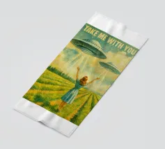 Alieni nelle loro astronavi UFO che cambiano dimensione dallo spazio esterno a un villaggio tra le montagne in Norvegia. Una donna retrò degli anni '50 osserva il fenomeno, sperando di non essere rapita. Surreale collage di arte fantascientifica retrofutura di MsGonzalez.