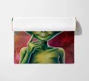 Pittura di un simpatico alieno verde.